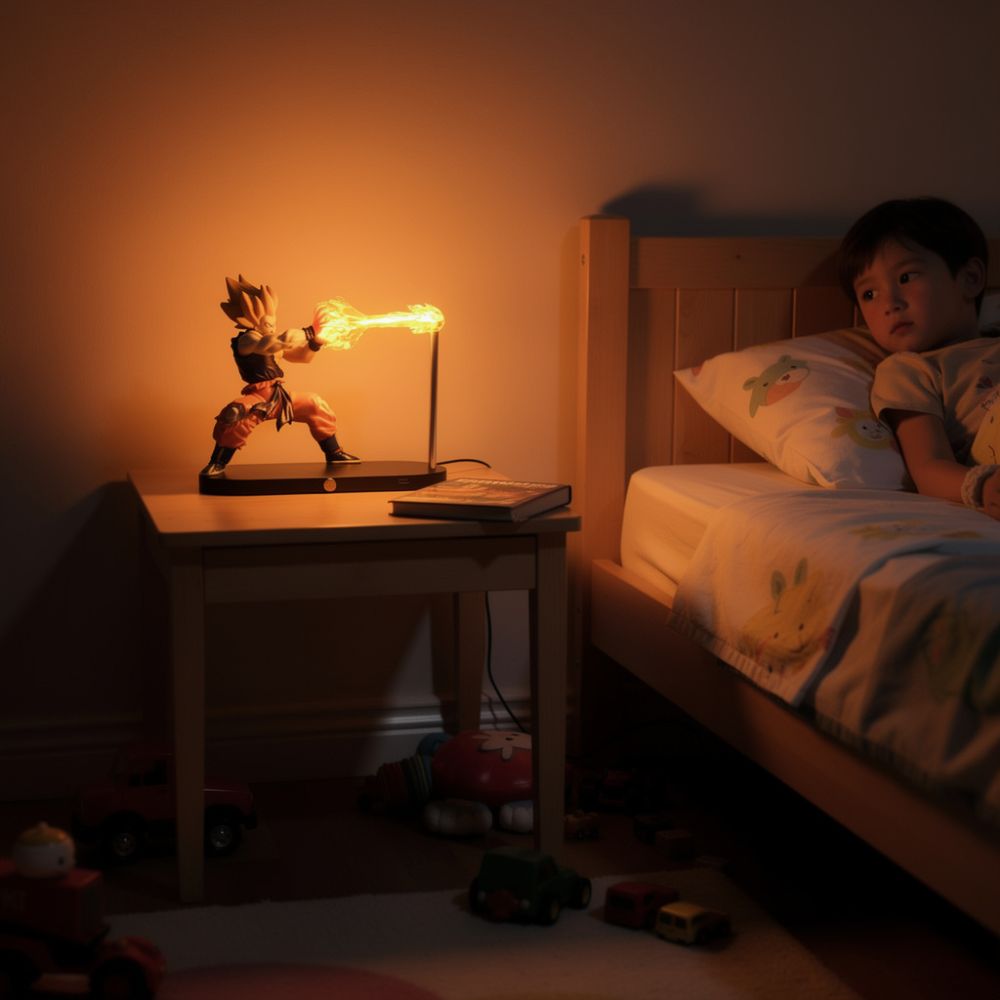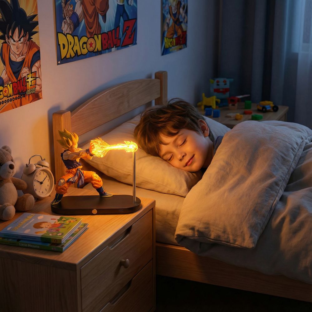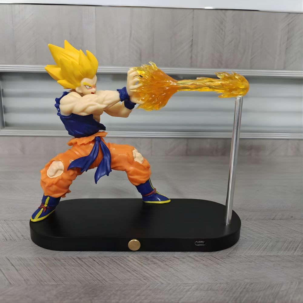 Lorsque vous appuyez sur le bouton, la figurine se met à lancer des boules de feu magiques, ce qui rendra votre chambre plus amusante et colorée. Cette veilleuse est parfaite pour les fans de Dragon Ball Z et pour ceux qui recherchent une lampe de nuit unique et amusante.