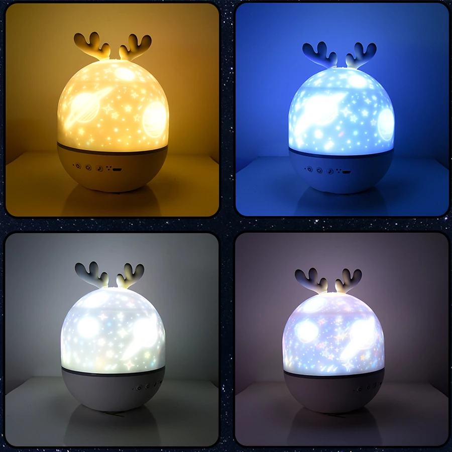 Créez une ambiance unique et magique avec la veilleuse musicale de chevet multifonctions en forme de cerf pour enfants ! Le haut-parleur bluetooth intégré vous permet de profiter de vos chansons préférées tout en vous relaxant, et la batterie rechargeable vous permet d’utiliser votre projecteur partout où vous allez.