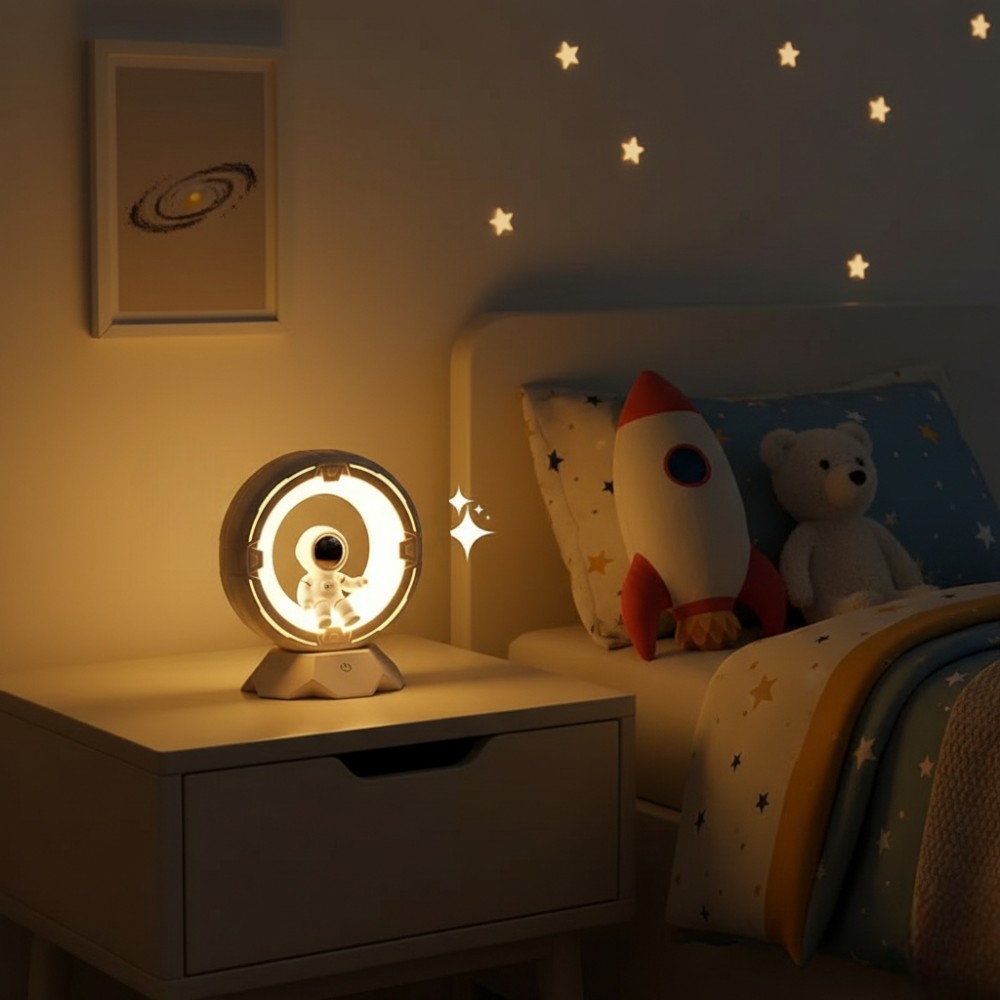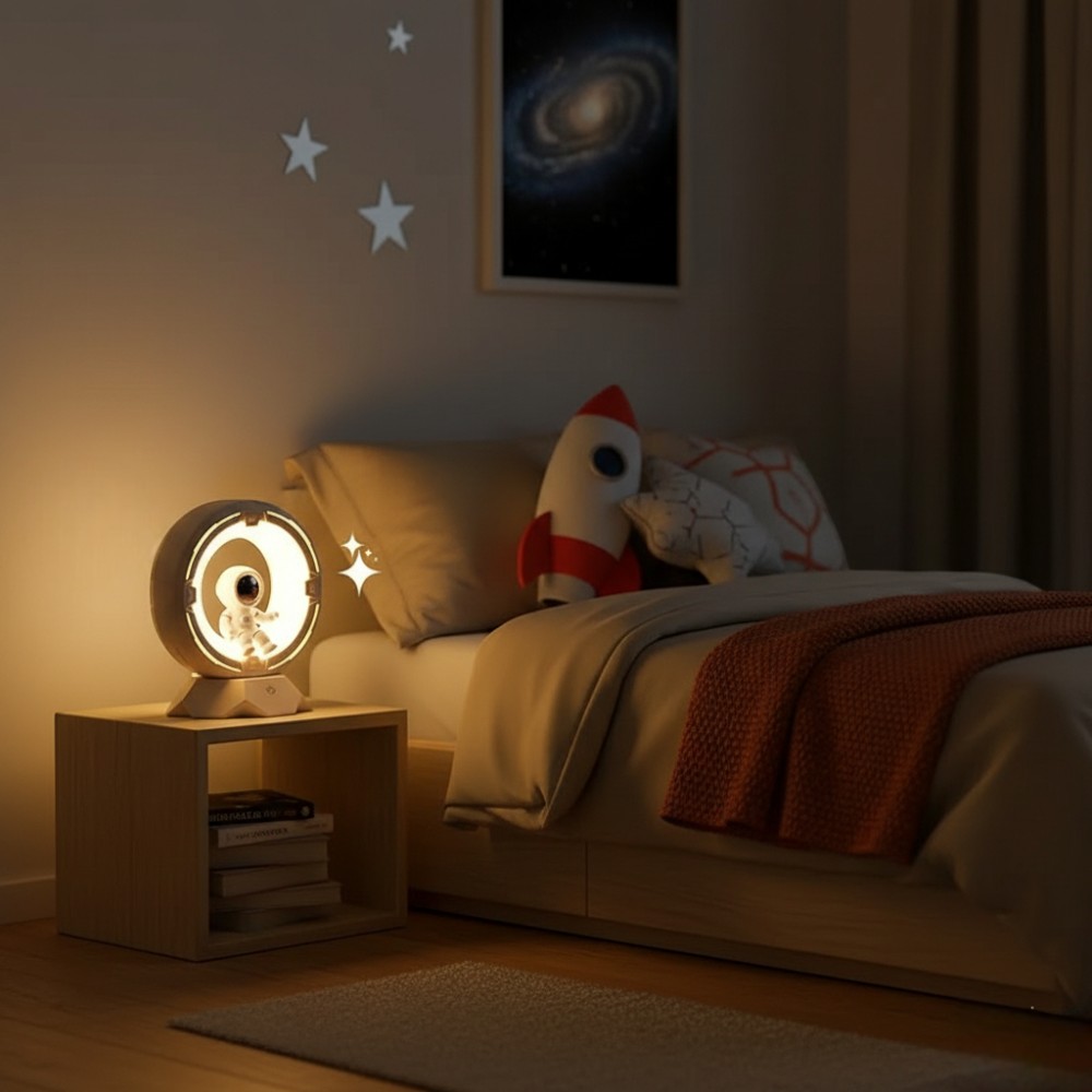 Quand vient la nuit, une douce lueur enveloppe l’espace de repos et apaise les esprits agités. Pensée pour les enfants qui aiment s’évader vers les étoiles, cette création diffuse une atmosphère réconfortante, idéale pour instaurer une routine du soir sereine.