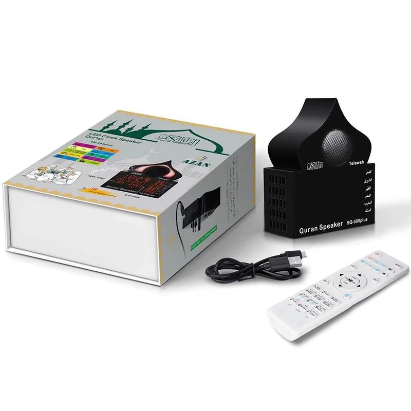 Profitez de cette veilleuse coranique et horloge de prière capable de réciter les versets du coran avec ses 18 récits sacrés intégrés traduits en 15 langues.