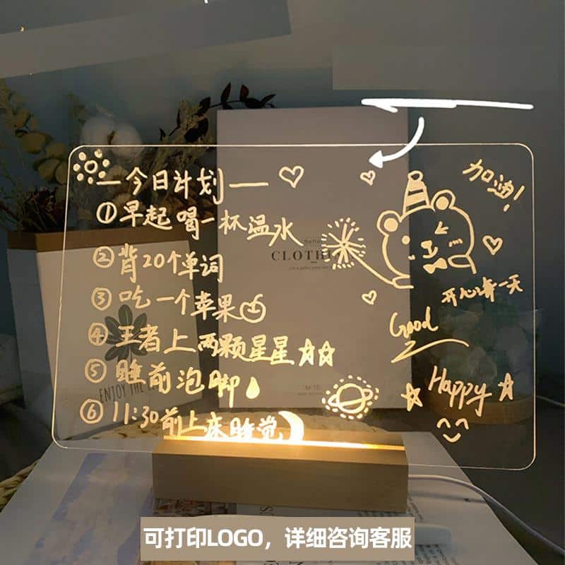 Découvrez notre veilleuse bloc note LED. Elle est à la fois fonctionnelle et pratique. En effet, cette veilleuse vous permet d’écrire ce dont vous avez envie, pour ensuite l’afficher dans votre chambre ou bureau. Ainsi, votre liste de tâche ne sera plus oubliée et même mieux, affichée !